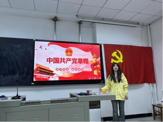 活动伊始,主讲人舒馨通过介绍《中国共产党章程》成立的时间及背景引出本次活动的主题。她提到,党章是党的总章程,是具有最高权威的党内法规,是党的根本大法。认真学习党章、严格遵守党章,是加强党的建设的一项基础性工作,也是全党同志应尽的义务和责任,对强化党员纪律意识,增强党的创造力、凝聚力、战斗力具有极为重要的作用。《中国共产党章程》共十一章,包含五十五条具体条文,其中包括党员和党的干部、党的组织制度、党的组织体系、党的纪律和纪律检查机关、党和共产主义青年团的关系及党旗党徽等五个方面内容,是党的各级组织和全体党员必须严格遵守的基本准则和规定。