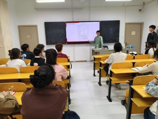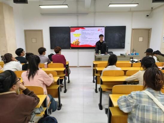 紧接着,文法学院学生第一党支部书记刘承栋发表讲话。他首先肯定了新晋发展对象们在学习和生活中的积极表现,并对他们未来的成长寄予了厚望。刘承栋书记在讲话中讲述了党员发展过程中发展对象们可能会遇到的困难和问题,他深知,成为一名合格的共产党员并非易事,需要经历各种考验和锻炼。因此,他鼓励大家要勇于面对困难,坚定信念,不断克服困难,努力提升自己的综合素质。同时,刘书记也强调了发展对象应该承担更多的义务和责任,主动参与志愿服务等社会实践活动,以实际行动践行共产党员的初心和使命。会议接近尾声,刘承栋书记还表达了对大家后续学习的期望。他希望大家能够保持谦虚谨慎、不骄不躁的态度,虚心向老党员学习请教,不断汲取他们的宝贵经验和智慧。