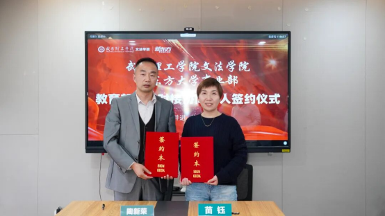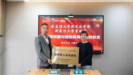 最后,武昌理工学院文法学院教学副院长陶新荣与新东方大学生学习与发展中心副校长苗钰,作为双方代表,完成了校企合作签约仪式。